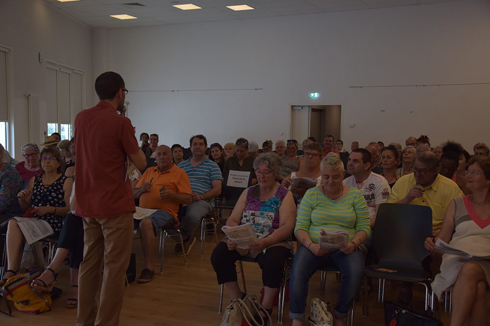 En soi, le Forum des projets lanestérien est une réunion publique organisée après la phase de dépôt des projets et avant la phase d’instruction technique du budget participatif. Une réunion publique pas si classique pour un budget participatif. La réunion est composée de deux parties principales : un temps de présentation des projets déposés, suivi d’un temps de vote, entrecoupés de temps plus récréatifs (yoga du rire, sophrologie, danse tahitienne par exemple) proposés notamment par des associations lanestériennes et de moments pédagogiques sur la construction budgétaire publique.